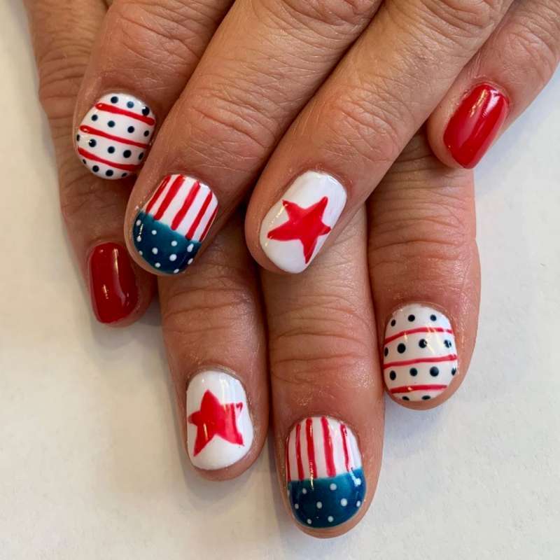 4th of july nails (red white and blue designs)